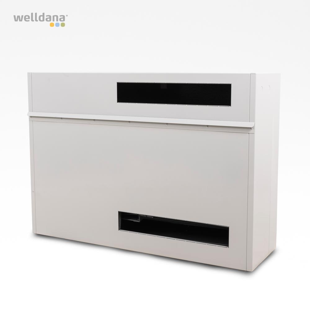 VPX-T 33-55 kondensatavfuktare är konstruerade för installation genom väggen i poolens tekniska rum. Avfuktarna är utformade som mycket hållbara enheter och kommer med ett intuitivt användargränssnitt och övervakningsalternativ för enkel användning. I kombination med högeffektiva fläktar och kompressorer säkerställer detta effektiv drift och betydande energibesparingar.