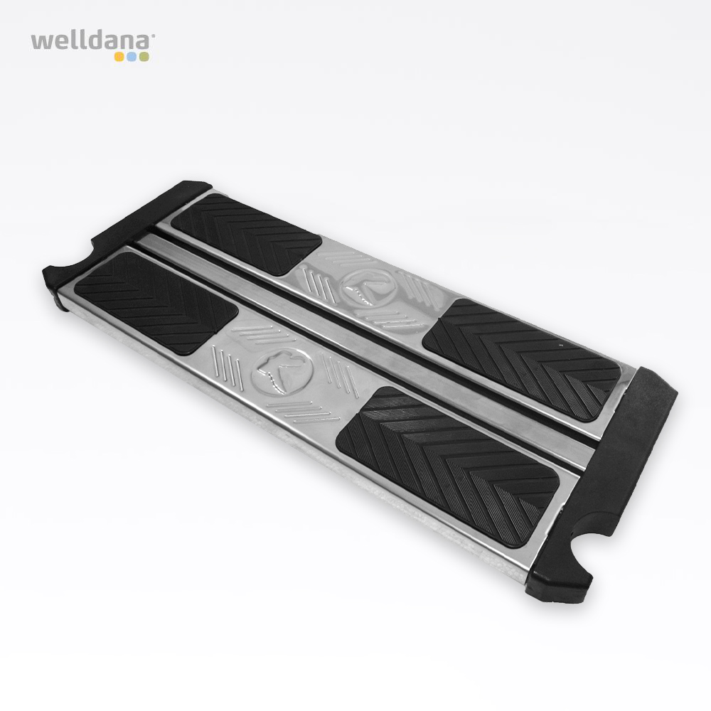 Säkerhetssteg som består av ett par halkfria ytor. Rekommenderas för att undvika halkar och klämningar mellan stegen och väggen när du stiger i/ur poolen.