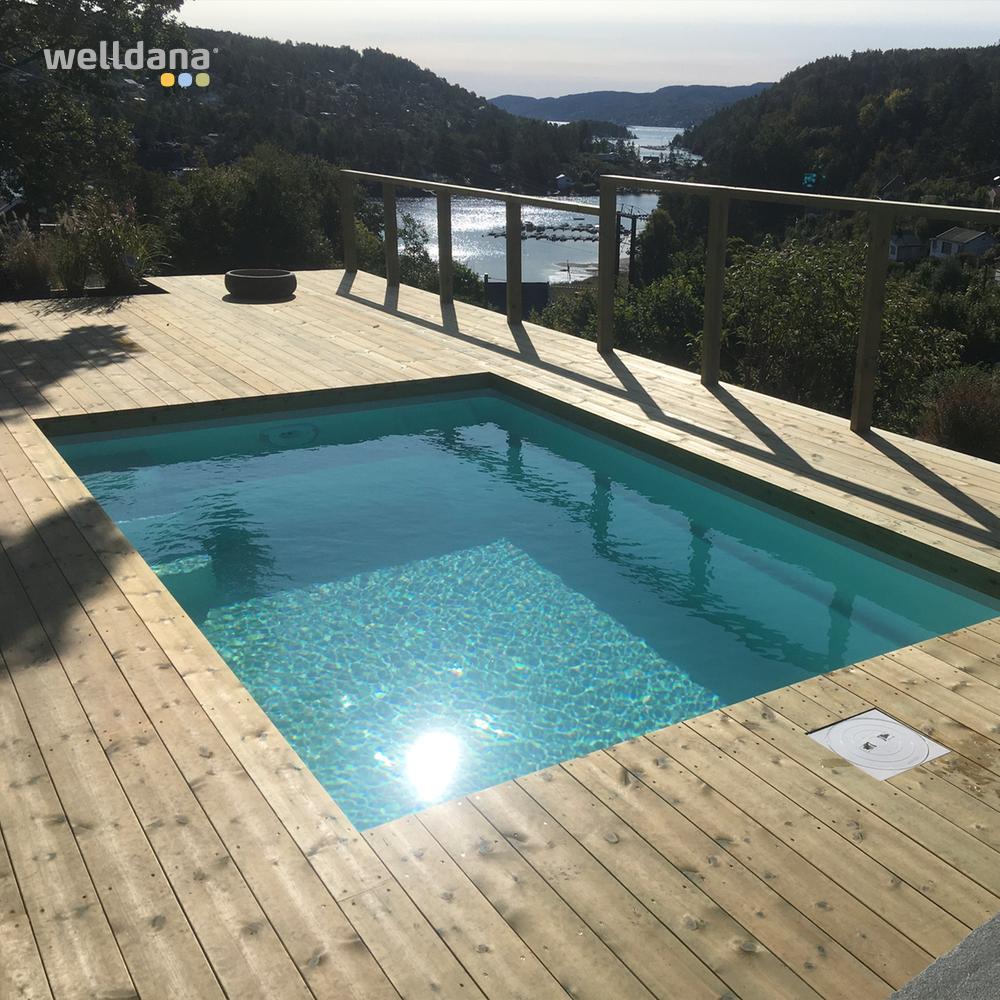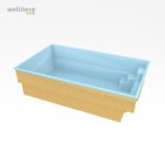 Welldana® fiberpool modell San Marino, en elegant pool av hög kvalitet tillverkad i 3-lagers glasfiberarmerad polyester, förstärkt med gelbestruken vinylester och keramisk beläggning. Ytorna är spraymålade med en mycket miljövänlig, UV-beständig färg av hög kvalitet som ger en elegant finish. Levereras standardisolerad med ca. 20 mm påsprutad polyuretanisolering. Monteras nedgrävd på fast underlag med gjutna sidor.