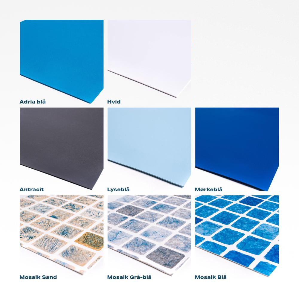 - Tillägg för Sand, antracit, vit, ljusblå eller mörkblå: 20% (anmärkning: jämfört med Adria Blue 0,8 mm foder)