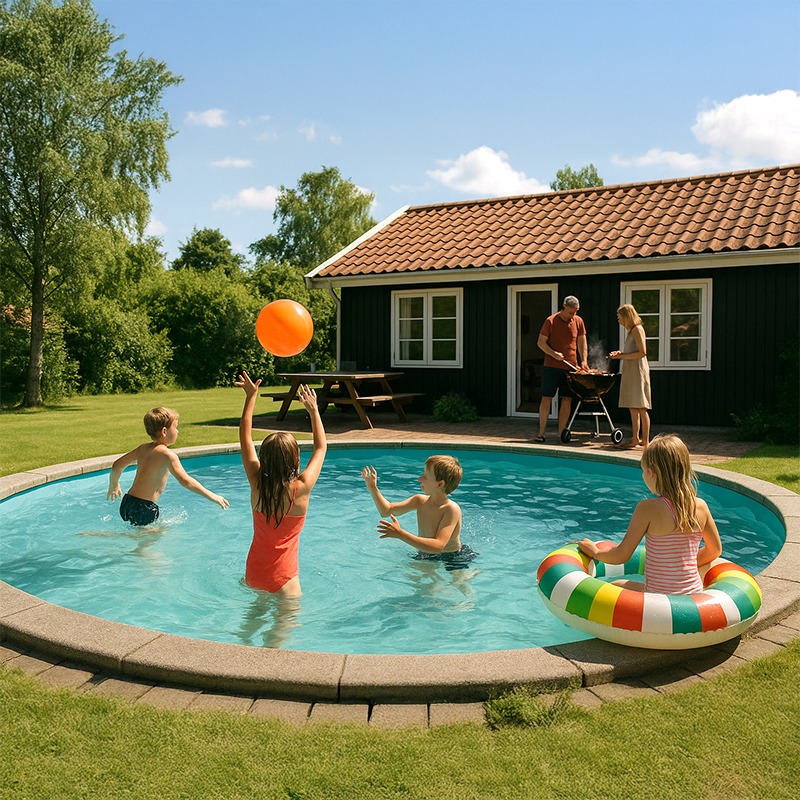 Milano är en rund kvalitetspool i stål som levereras med en kraftig galvaniserad och lackerad stålstomme, topp- och bottenskenor i PVC, stöd i galvaniserat järn samt en anpassad liner. Poolen finns i många varianter och är prismässigt förmånlig och lätt att sätta upp. Poolen kan monteras helt fristående eller delvis nedgrävd.