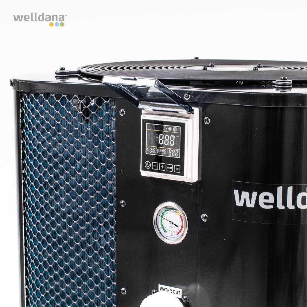 Welldana® WMV, en vertikal poolvärmepump i toppklass, konstruerad för lufttemperaturer ned till -5 °C. Den tillverkas med bästa tänkbara komponenter, vilket garanterar tyst, stabil, ekonomisk och säker drift.